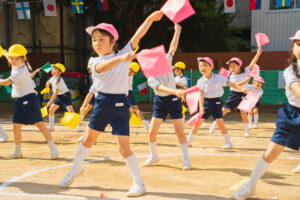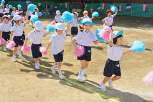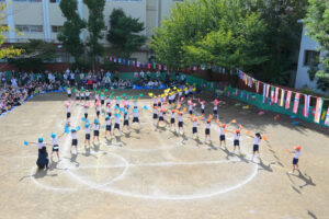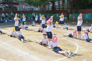 旗体操では心を一つに、伸び伸びと踊りました。