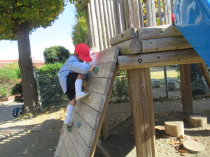 いちご組のお友だちも自分の体をたくさん使ってお姉さん、お兄さんと笑顔であそぶ姿があります。