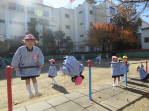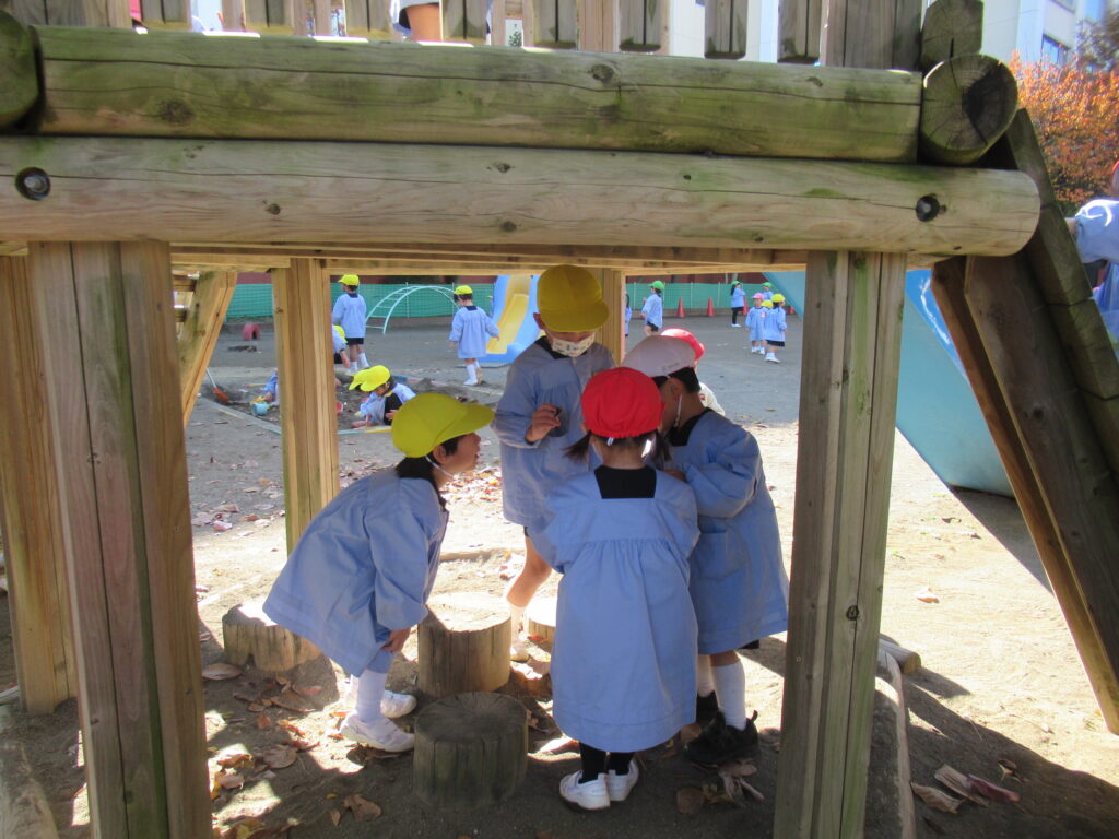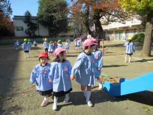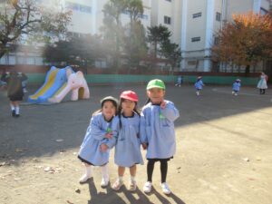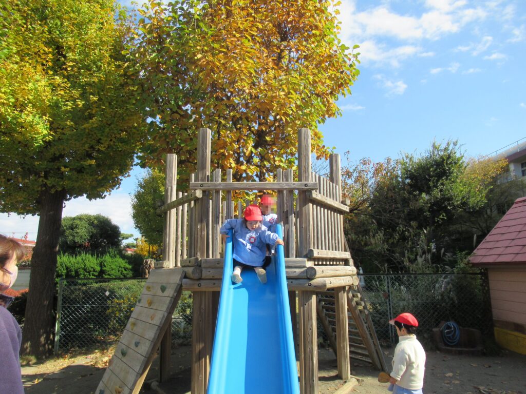 幼稚園の園庭の木々も色づいてきました。