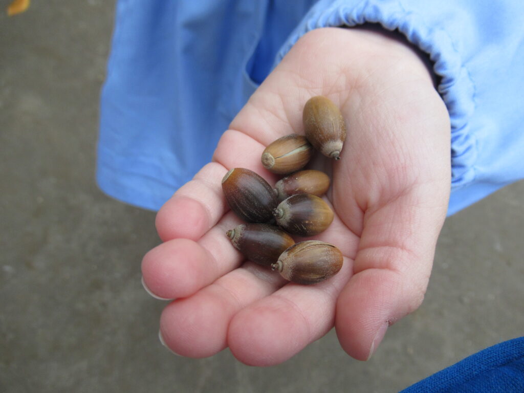 どんな落ち葉や木の実があるかな?秋さがしを毎日、楽しんでいます。
