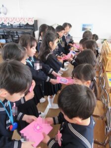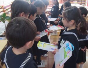 お別れ会 2026-03-23 卒園式の前日にクラスでお別れ会をしました。 年長児から年中児・年少児に気持ちのこもったカードを贈りました。 年中児から年長児には、絵の具でデザインした時間割表を、年少児からは粘土で作ったペンダントを贈りました。 お互いに「ありがとう」の気持ちを伝え合いました。 前へ 一覧へ